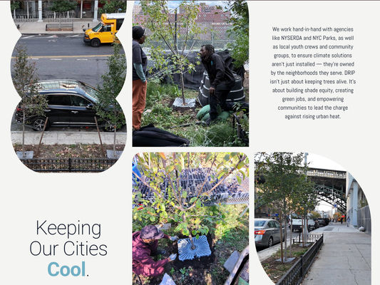 DRIP Tech Co. developed patented irrigation technology addressing water waste and urban heat island challenges across public and private sectors. With field validation from NYSERDA and active municipal pilots spanning government agencies, NGOs, and private developers, they needed a complete brand system and digital presence that could communicate both environmental mission and commercial viability across B2G, B2B, and B2C channels.